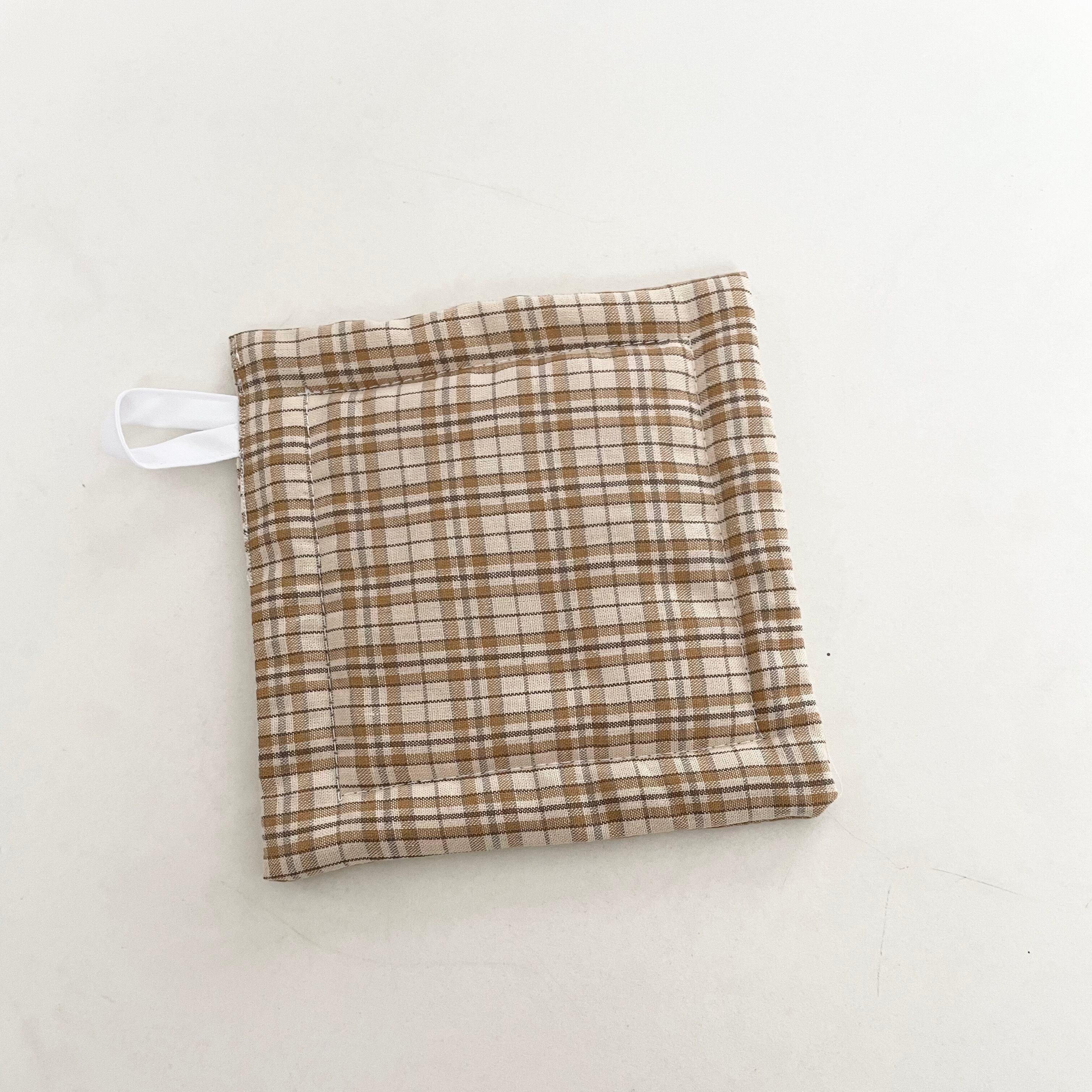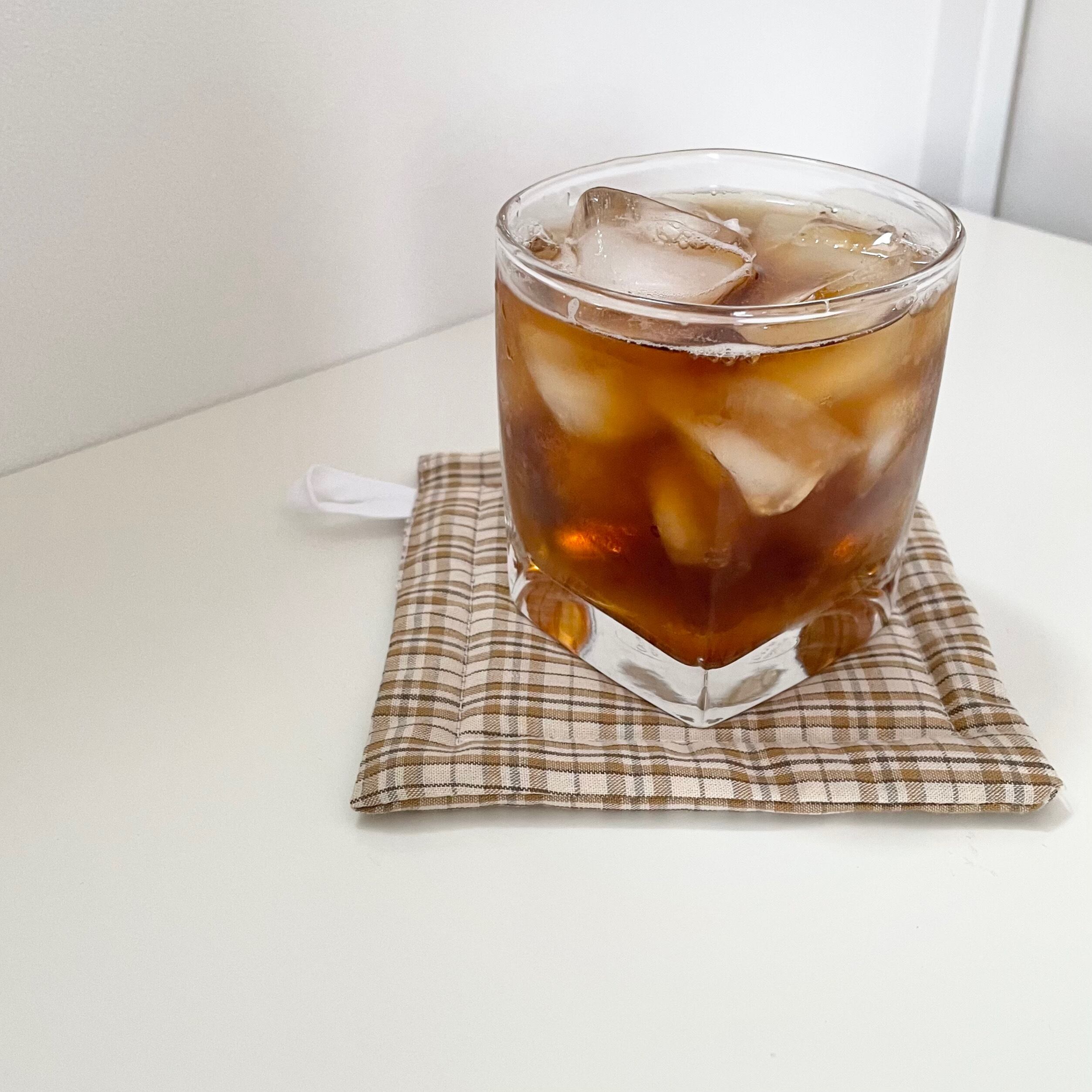 ブラウンのチェック柄が、どんなテーブルにも馴染みます。中綿を使用しているので、見た目がふんわりしていてカワイイです。また、グラスやカップの熱を十分に遮断してくれるのでテーブルの傷や熱ダメージを防ぐことができます。
